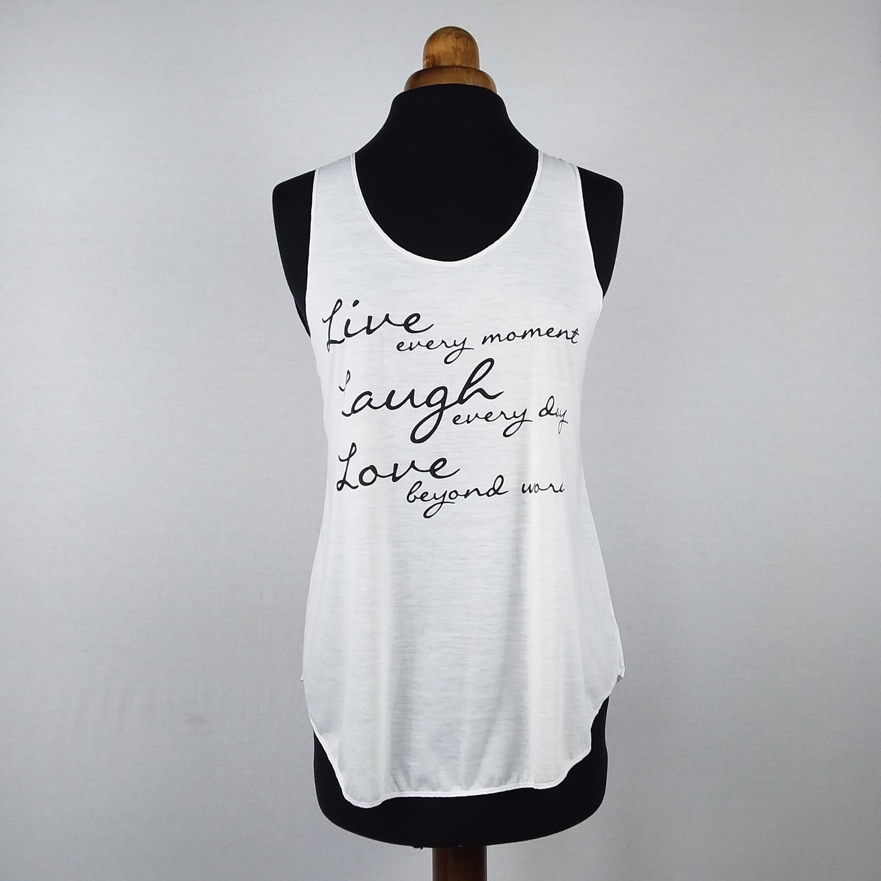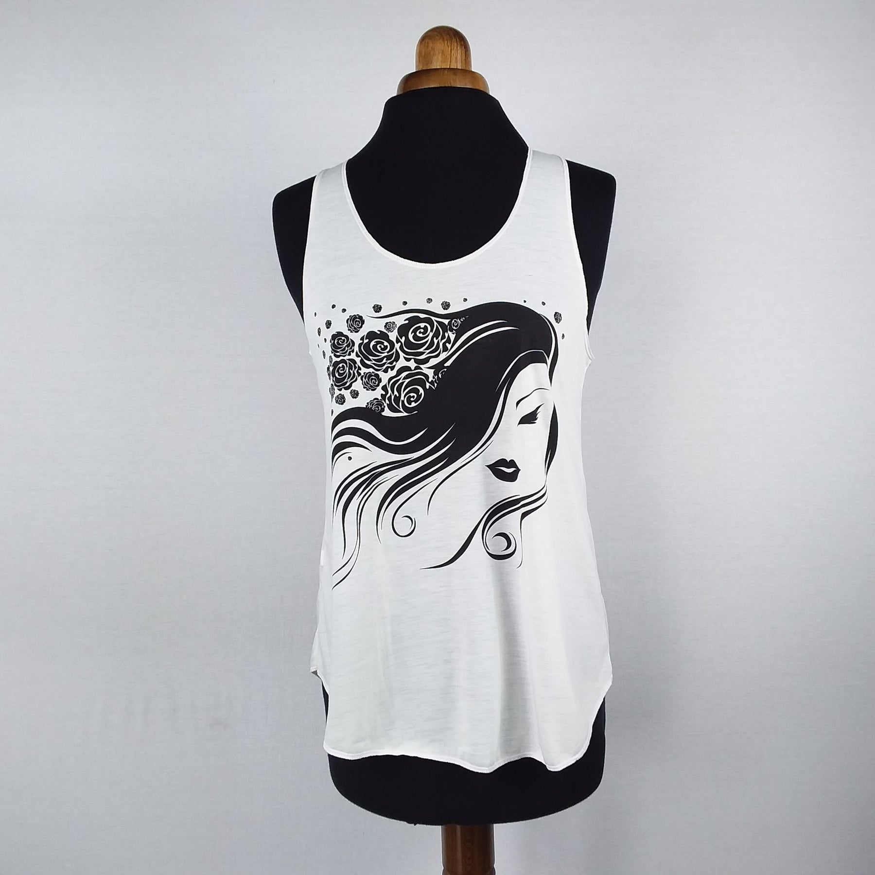 Het model loopt iets uit, de voor- en achterkant is het iets langer dan de zijkanten. Rond de buste sluit het netjes aan en valt losjes rond de heup. De armsgaten zijn ruim en op een warme dag luchtig.